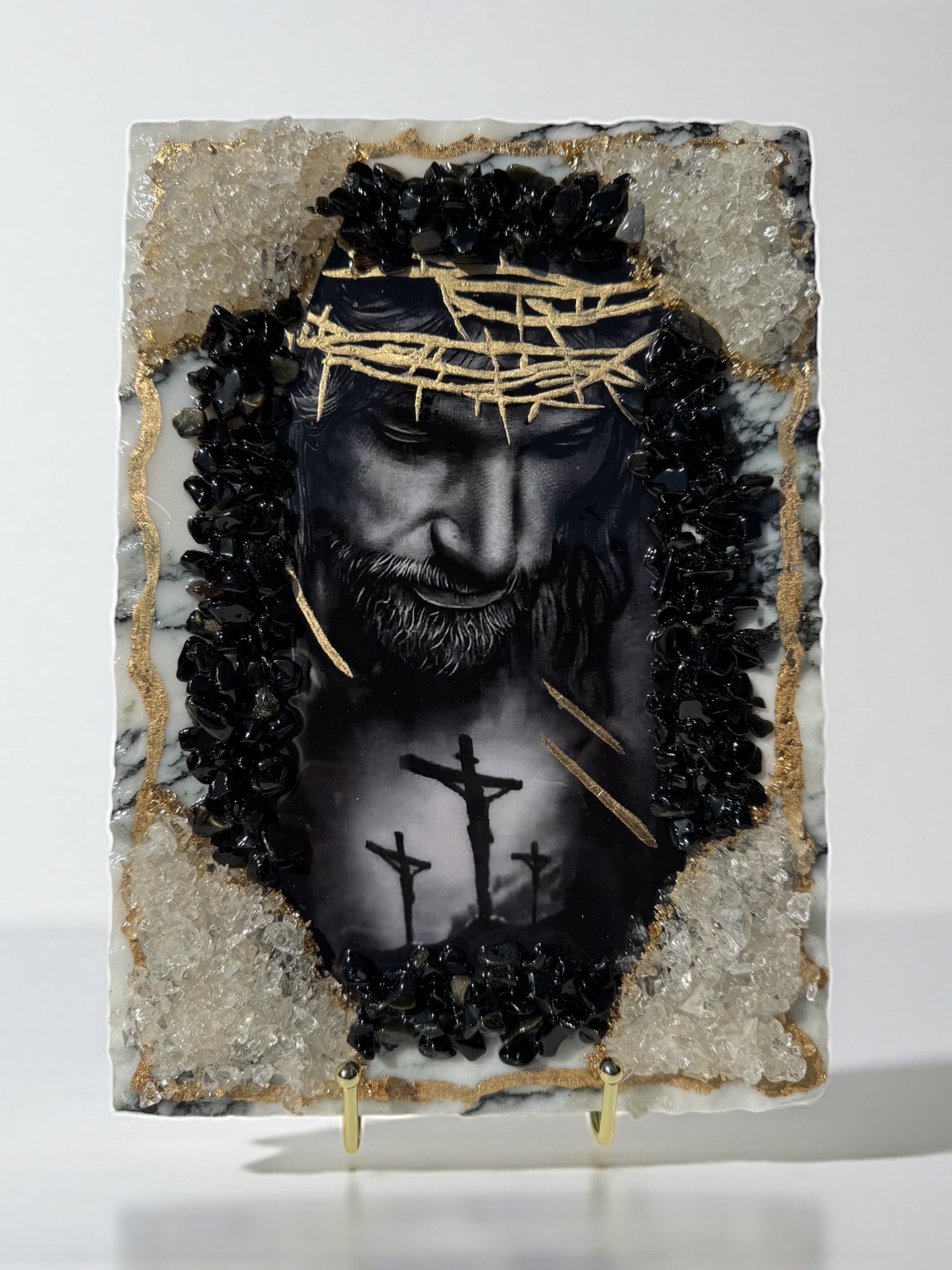 Our handcrafted religious icons are created with reverence, artistry, and attention to detail. Each piece is a unique work of devotion, adorned with Swarovski® crystals, 24k gold leaf, abundance crystals, quartz, and crystal points — chosen not only for their beauty, but for their symbolic meaning.
